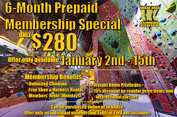 The Urban Krag Climbing Center features 10,000 square feet of textured and sculpted vertical terrain with heights ranging from 28 to 56 feet, an inclined bouldering wall for both advanced and beginner climbers, and plenty of people ready to jump in and help with a route.